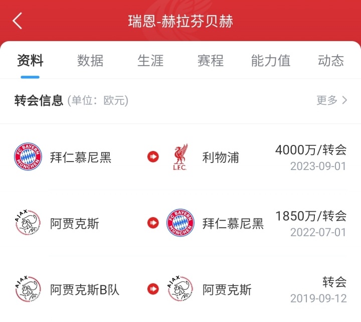2023年夏窗,拜仁以4000万欧的转会费将赫拉芬贝赫卖至利物浦,如今赫拉芬贝赫成为利物浦中场不可或缺的一人,身价涨至7500万欧。