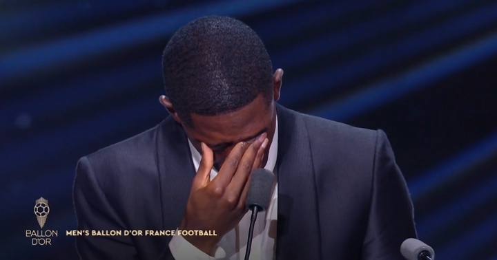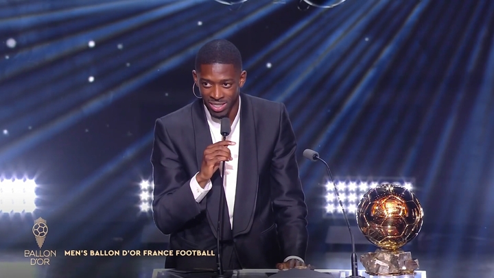 登贝莱:"我此刻的经历非同寻常。这是与巴黎圣日耳曼一起度过的不可思议的一年。我有点紧张,这并不容易。由罗纳尔迪尼奥为我颁发这个奖项,真是太特别了。"