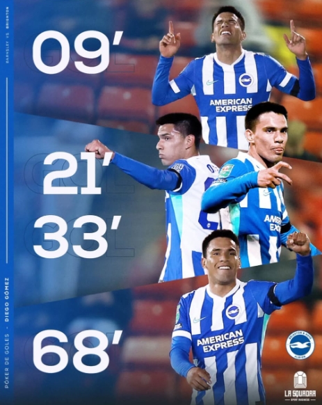 09月24日讯 联赛杯第三轮,布莱顿6-0巴恩斯利。本场比赛,迭戈-戈麦斯代表布莱顿上演了大四喜。