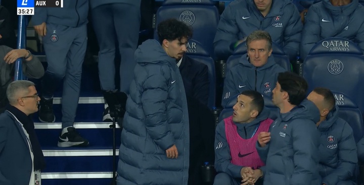 09月28日讯 法甲第6轮巴黎vs欧塞尔第35分钟,维蒂尼亚刚刚送上助攻,似乎无受伤情况被换下,阿什拉夫登场。
