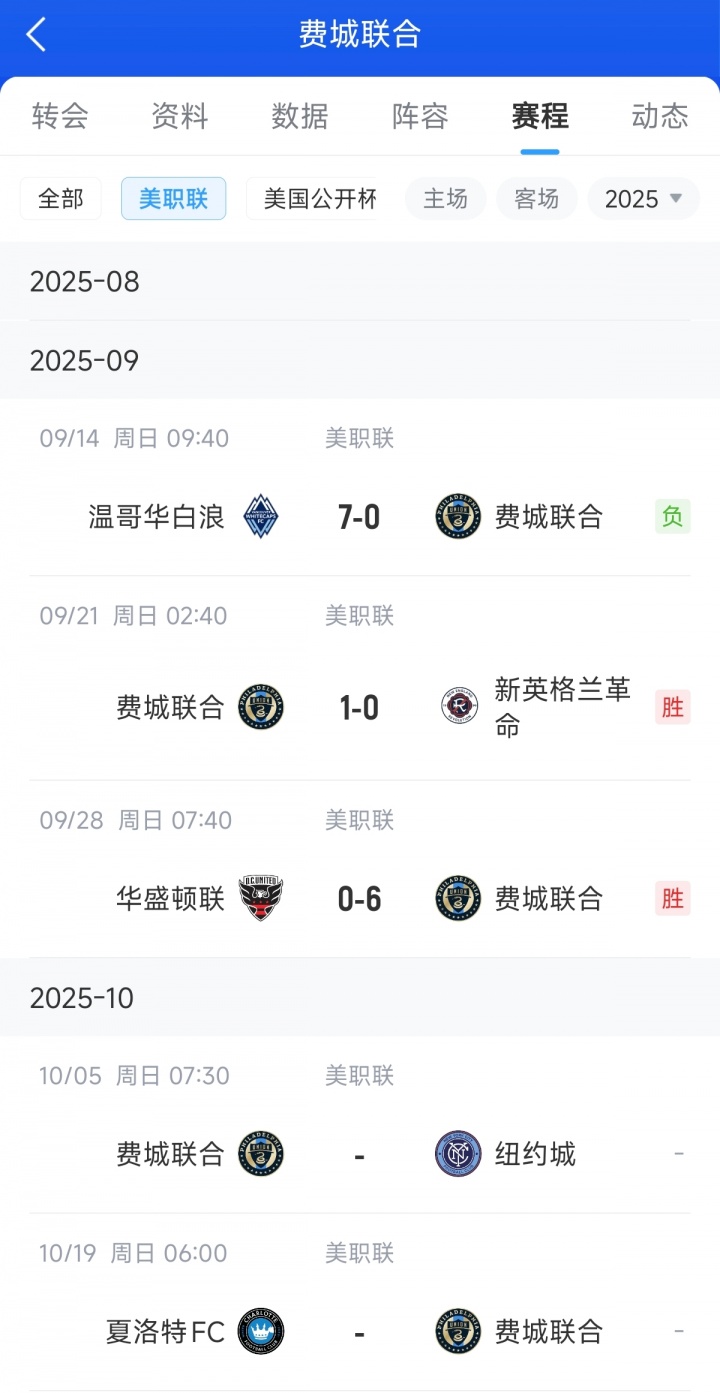 09月28日讯 美职联比赛,费城联合6-0击败华盛顿联,仅剩2轮的情况下,成为美职联常规赛冠军最大热门。