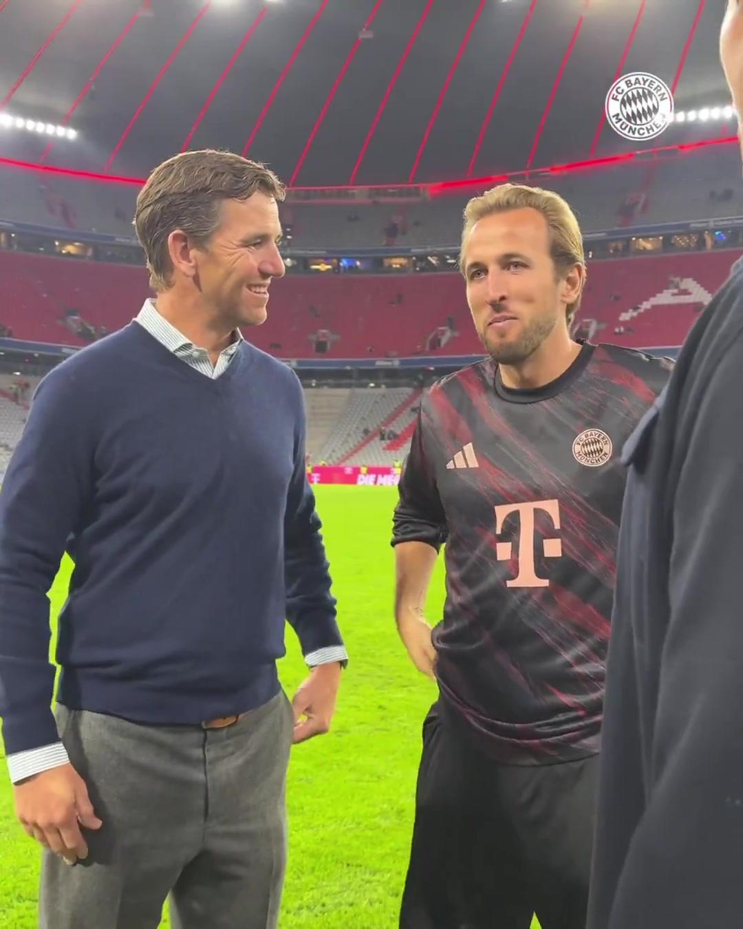 9月29日讯 NFL(美国职业橄榄球联盟)传奇球星曼宁造访拜仁,获赠凯恩的9号球衣。