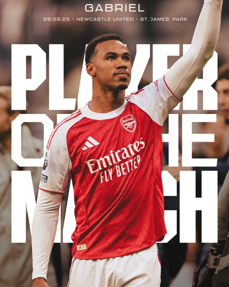 此役加布里埃尔补时阶段头球绝杀,帮助阿森纳取胜,阿森纳官方宣布,他当选本场比赛队内最佳球员。