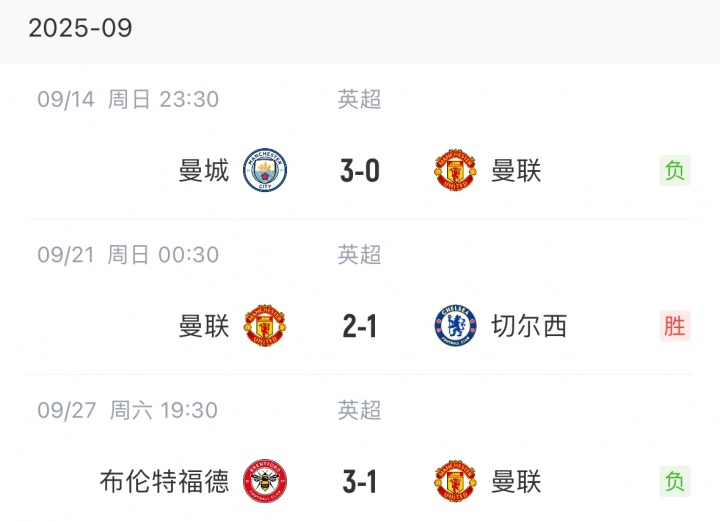 9月份,曼联共进行了3场比赛,战绩为1胜2负。B费三场比赛全部首发出战,并在对阵切尔西时打入一球。