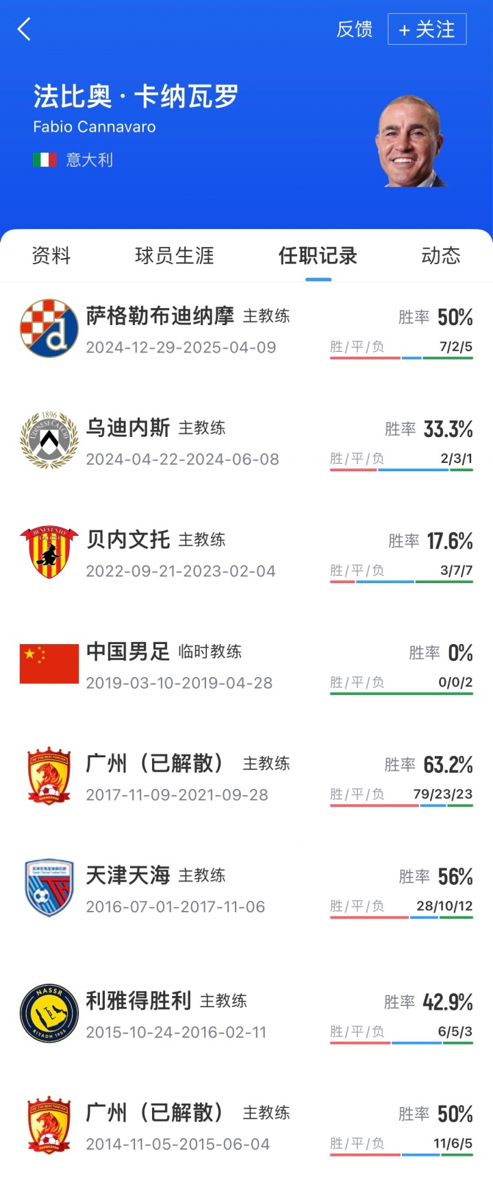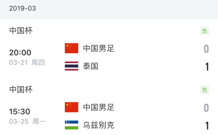 2019年中国杯,当时的国足便是由卡纳瓦罗执教,国足先后0-1输给泰国和乌兹别克斯坦。