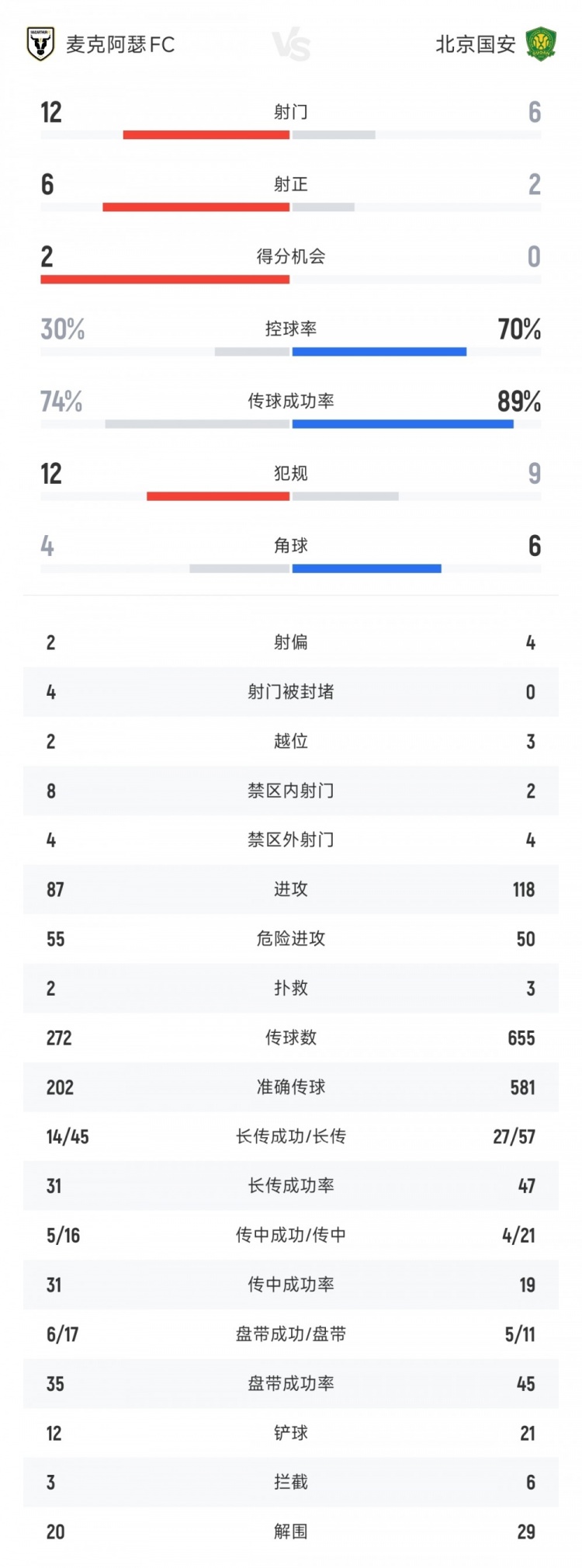 10月03日讯 亚冠二级联赛小组赛E组第2轮,北京国安客场0-3不敌麦克阿瑟,掉至小组垫底,麦克阿瑟升至小组第二。
