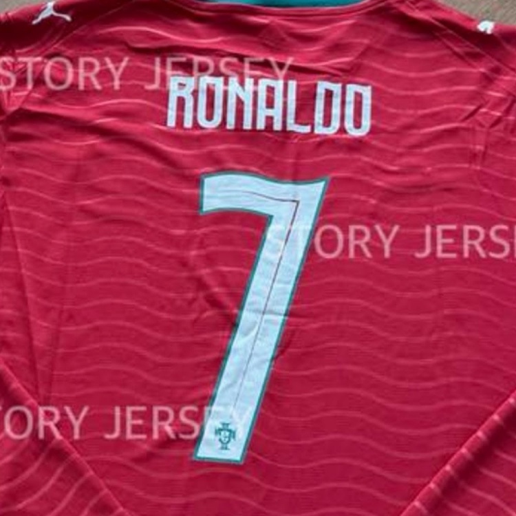 这种波浪形的设计灵感几乎可以肯定源自葡萄牙2026年主场球衣上的波浪图案。这使得球衣设计与字体之间形成了完美和谐的搭配。