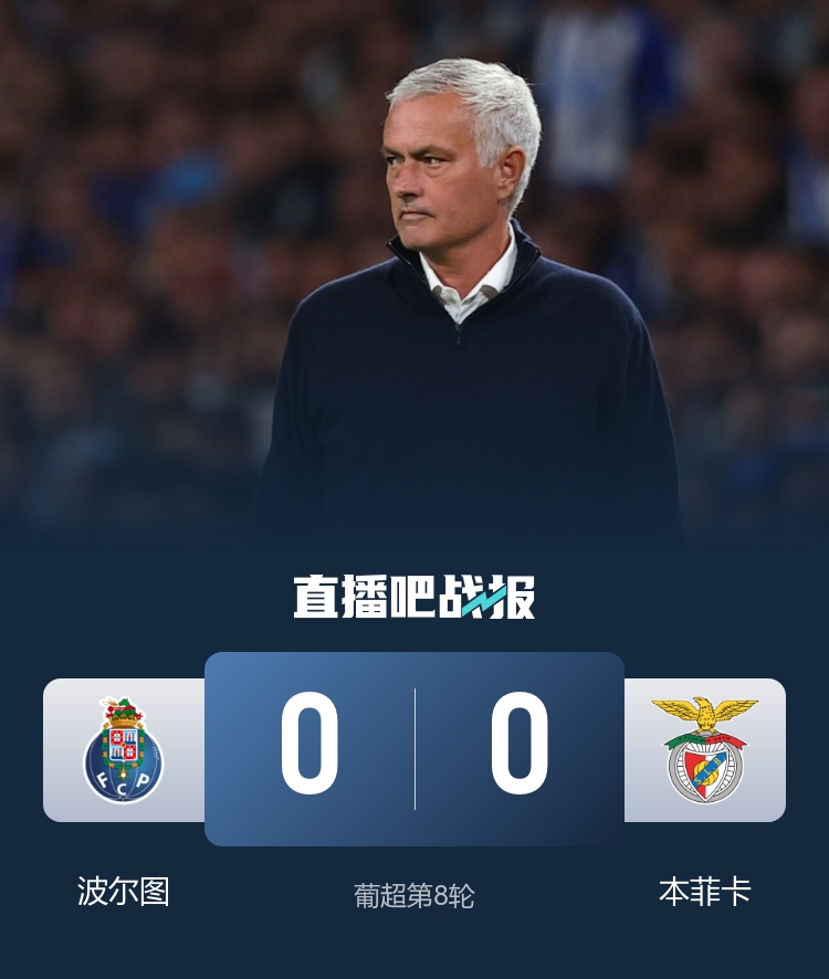 本菲卡0-0波尔图 穆帅重返巨龙球场 基维奥尔险乌龙+手球未判点