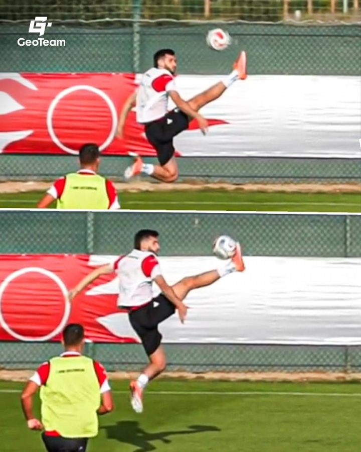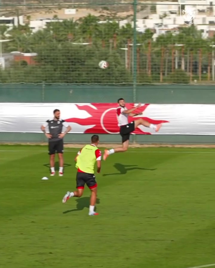 10月10日讯 格鲁吉亚国家队昨日晒出了一段克瓦拉茨赫利亚训练时停球的照片。