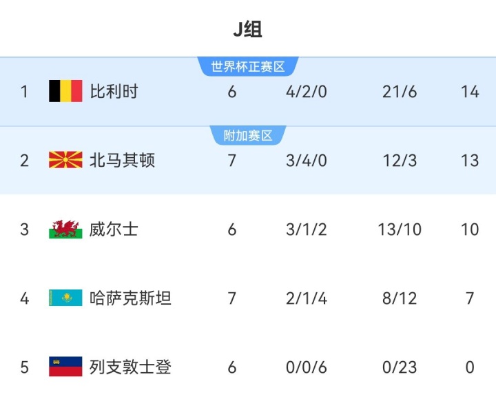 而在积分榜上,比利时还剩最后两轮比赛,暂时以1分优势领先多赛一场的北马其顿,但比利时的最后两场对手是本组实力较弱的哈萨克斯坦和列支敦士登,在首回合较量中比利时以两个6-0战胜这两个对手。