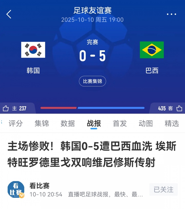 4天前刚刚5-0横扫韩国队,巴西队今天遭遇让二追三队史首负日...