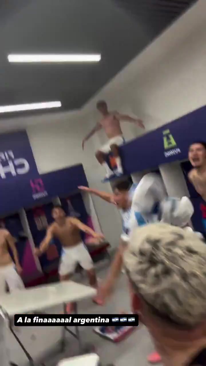 今天,阿根廷U20在世青赛半决赛1-0击败哥伦比亚U20,挺进决赛。赛后,球员们在更衣室疯狂庆祝。